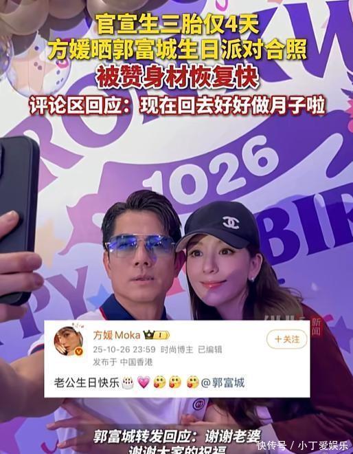 郭富城官宣三胎得女,说家里凑成了“女神之家”,幸福感爆棚。这话音刚落没几天,就是他60岁的大生日。按理说,妻子方媛刚生完孩子,正是需要静养的时候,就算不出席,大家也都能理解。可她不仅来了,还来得“太拼了”。